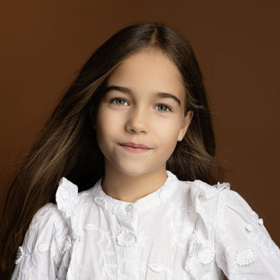 Age 09 | Height 125 cm | Hair Color Dark Blond | Eyes Color Green/Gray | Shoes 32 EU